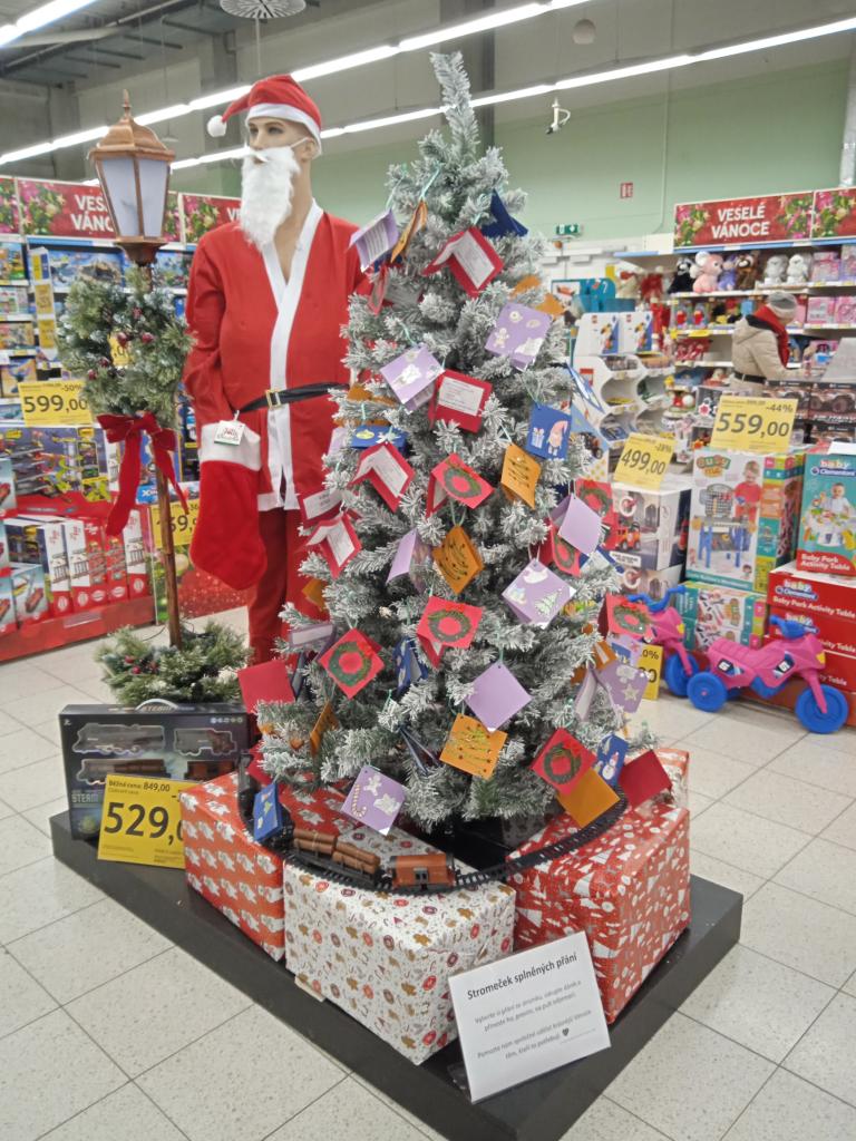Až do 19. 12. 2025 mohou návštěvníci hypermarketu zakoupit drobné dárky podle přání našich klientů, která jsou umístěna na vánočním stromku v prostorách obchodu. Zakoupené dárečky budou osobně předány během štědrovečerního setkání klientů.