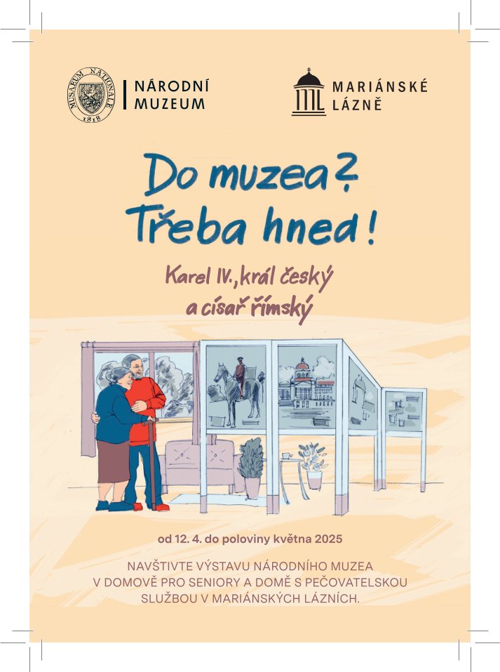 Národní muzeum se dlouhodobě snaží vycházet vstříc svým příznivcům a zájemcům o kulturu. Proto se rozhodlo vytvořit projekt Do muzea? Třeba hned, který umožní prohlídku výstav i těm, kteří se do muzea dostat nemohou. Národní muzeum vytvořilo několik panelových výstav s různými tématy a nyní v Mariánských Lázních bude právě otevřena výstava, která se věnuje významnému období v českých dějinách. Národní muzeum výstavy nejen vytváří, ale také zdarma nainstaluje. Výstava potrvá do poloviny května 2025.